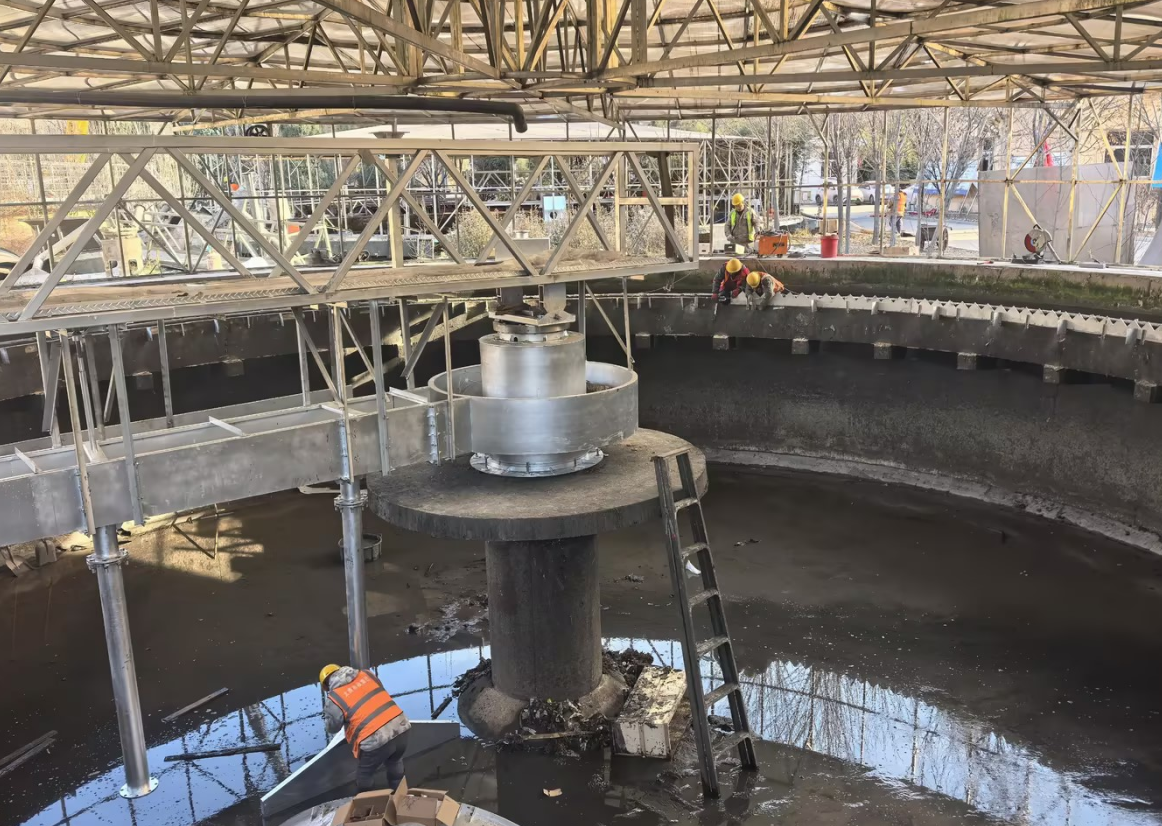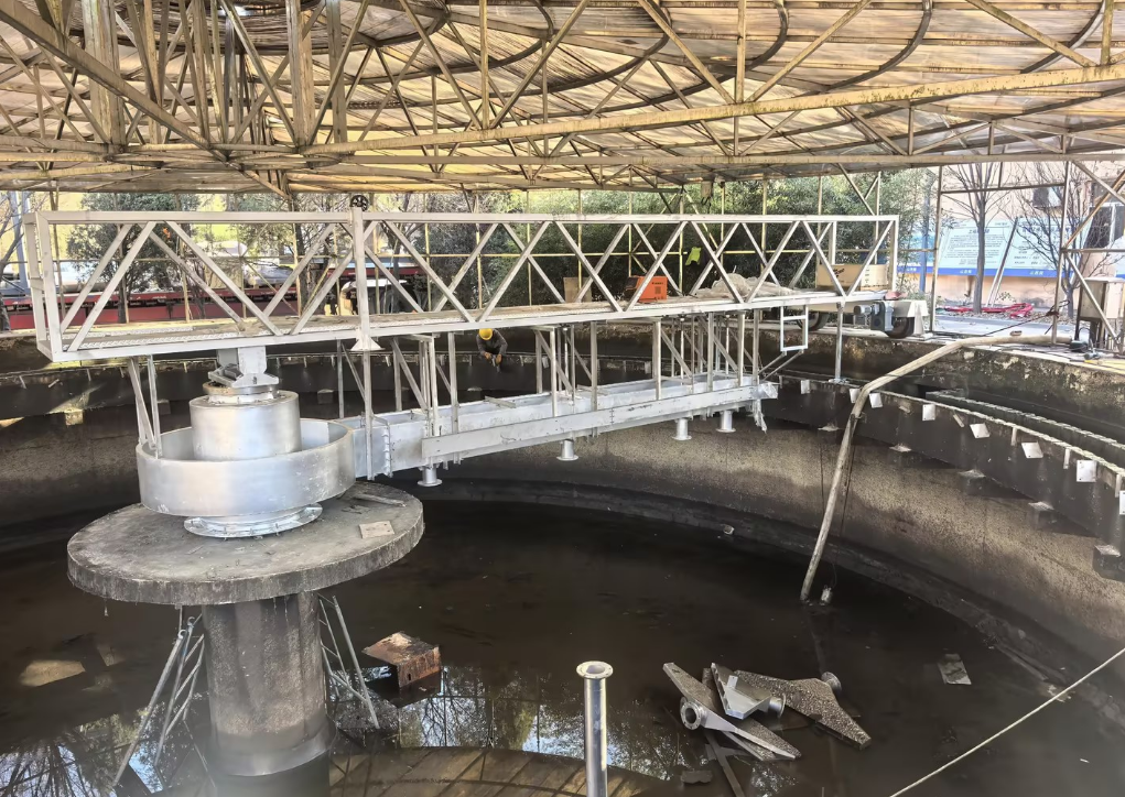 Ang peripheral drive sludge scraper ay isang malawakang ginagamit na solid-liquid separation equipment sa pangalawang sedimentation tank at pampalapot na tangke ng sewage treatment plants. Gumagamit ito ng isang peripheral drive system, na tinitiyak ang matatag na operasyon at kahit na puwersang pamamahagi, na ginagawa itong angkop para sa pangmatagalang tuluy-tuloy na operasyon sa malalaking diameter na mga tangke. Itinutuon ng kagamitan ang putik sa ilalim ng tangke gamit ang isang scraping device, at sabay-sabay na inaalis ang putik sa pamamagitan ng mga suction pipe, na epektibong nagpapabuti sa kahusayan sa pag-alis ng putik at kalidad ng maagos na tubig. Ang peripheral drive sludge scraper ay may makatwirang istraktura, mababang pagkonsumo ng enerhiya, mahusay na resistensya sa kaagnasan, at maaasahang katatagan ng pagpapatakbo. Maaari itong umangkop sa iba't ibang kalidad ng tubig at mga kondisyon ng pagpapatakbo, na ginagawa itong isa sa mga pangunahing kagamitan sa paggamot ng dumi sa munisipyo at mga sistema ng pang-industriya na wastewater treatment.